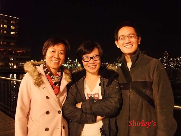 愜意小鎮有愜意小鎮的美好,例如: 不用每天與惱人的塞車奮戰;但繁華都市也有繁華都市的美好,例如: 感動味蕾的各式美食;人生真的是一輩子都處在取捨的過程啊~~餐後,我們繞回Daphne的公寓留戀幾眼(還差點留下我的灰圍巾到此一遊,折騰一會,終於物歸原主),最後再到 Newport 看夜景,依港遠眺曼哈頓 (Manhattan)。九年前,同樣的地點,Daphne在紐約念書,在她的收容下,剛離開校園的Chen-Hao和我,拿著台電獎學金,展開我們的第一次海外旅行,那可也是我長這麼大,第一次搭飛機出國,興奮到了極點;九年後,Daphne在台灣為責無旁貸的事業打拼,反倒變成我們來了美國,物換星移,也就是所謂的人生!