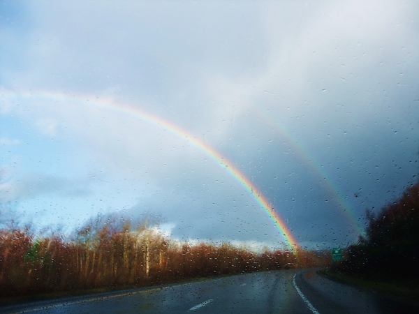 周五中午等Chen-Hao上完課,下碗麵然後從315出發,延著 I-80 East一路往東開,直達New Jersey。果然真的是天上的小鳥都在為我歌唱,正前方天邊出現兩道虹與霓歡欣鼓舞,讓人驚喜讓人開心。終於快到New Jersey,在小鎮裡,好久沒看到對向車道這麼長一條車龍了,想必大夥是趕著回家度周末吧! 而進城的我們,殊不知前方正有更緩慢的車龍等我們。