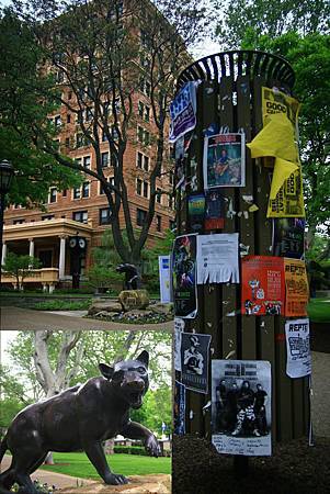5/12(周四),又是緩慢地在旅館裡過用簡單的早餐後,驅車往 University of Pittsburgh 去,逐漸可以從路邊行人感受到學園氛圍,Cathedral of Leraning 是主要景點,她是匹茲堡大學的資產,此建築物據說擁有世界上第二高的教室。只見一樓挑高的空間裡,零落幾位學生在不同的角落,學生的氣息總是那麼躍動純真,擦肩而過的稚嫩臉龐,原來我離青春已有那麼點距離了。我們上了三樓去參觀布置成各國風味的 Nationality Classrooms,總共有27間的風味教室,不過我們只參觀位於三樓的,人工裝潢雖是比不上真正的古蹟,不過,看在實際作為教室操作的用心上,也總有那麼些趣味與特別。
