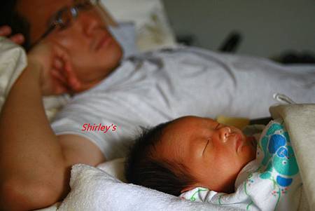 之前(7/1)一個午後,Chen-Hao跟我說,他看著熟睡的Ernie,突然眼淚就流下來,覺得一切都好感動,我握握他的手,摸摸他的頭,一邊覺得Chen-Hao真是可愛,怎麼這麼樣易感呢? 一邊心裡想著,我可是很堅強的,也沒有 baby blue,才不會被你的三言兩語煽動,一起抱頭亂感動一番呢!!