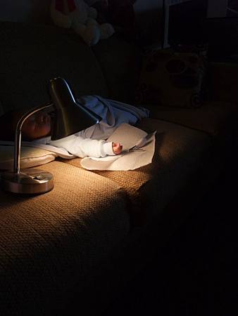 不過是下午兩點多,屋裡暗得跟什麼似的,點盞小燈,屈坐在沙發旁的地板上,幫Ernie剪指甲,小心翼翼地,真怕粗魯動作剪到指肉驚醒熟睡中的他,我想,還是先剪好指甲先,我想那麼多做甚麼? 待會還要挖鼻屎呢!!!
