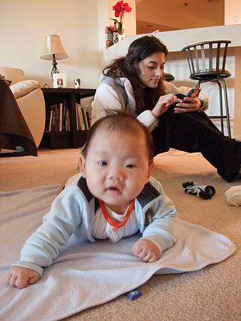 Rita說她喜歡女娃兒,但懷孕前有聲音在耳邊說: Joseph....所以,如果是男娃娃名字就是Joseph,如果是女娃娃,她有幾個候選名單。原來人家產檢還沒作,就先想好名字了啊,我們家Ernie是出生前兩周,爸爸媽媽才趕緊確定的。上圖左是Rita正在問Ernie想要boy friend還是girl friend? 我幫Ernie回答,其實Twin也不錯啊! 上圖右,是Rita忙著用iphone傳Ernie的照片給另外一位朋友,Ernie的臉,又晃動了,真想換一台相機。